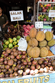 The name of the other one is salak or snake fruit. I am not surprised by the second name. With the shape of something like a long fig, the white fruit has a brown skin reminiscent of snakeskin, like short pinecone flakes. However, tasting this fruit is immediately considered a mistake on a conscious and subconscious level. I don’t know what the taste should be, but the seemingly juicy part sticks to every surface of my mouth and dries it up like eating fruity flavoured chalk. No, thank you, we’ll stick to the mangosteens.